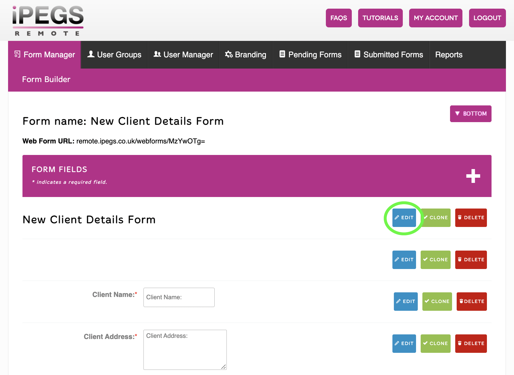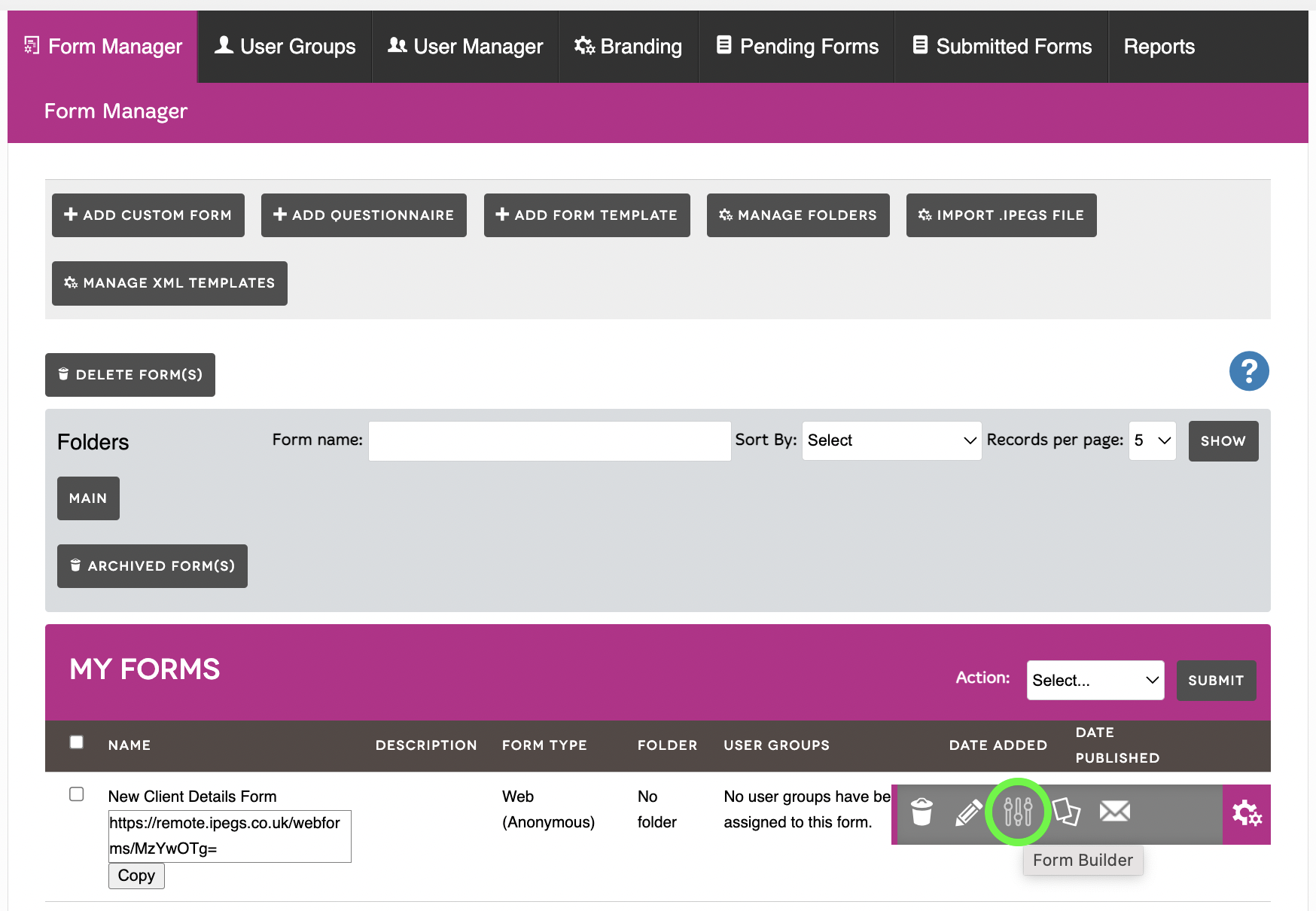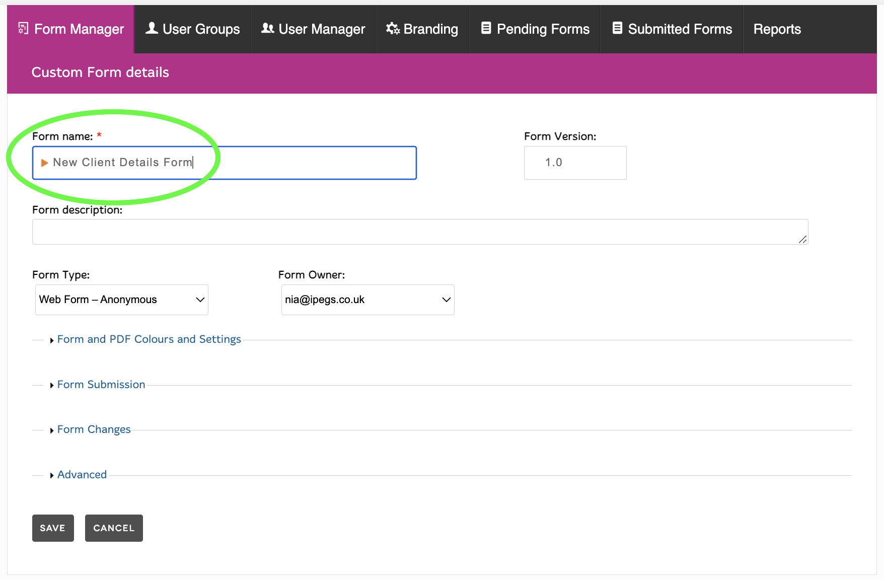 - Go to the Form Manager